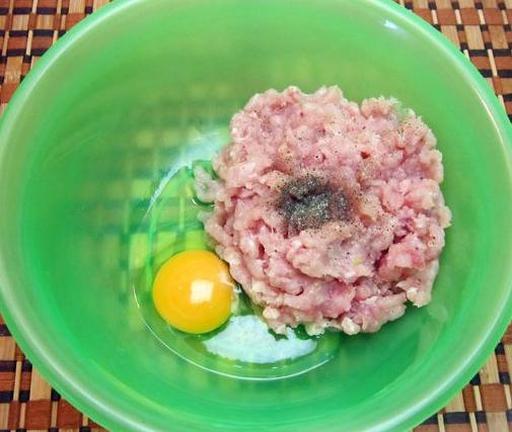 In a bowl, combine the ground chicken, egg, black ground pepper, and salt.