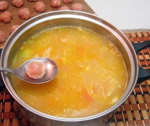 Season the soup with salt to taste. Add the meatballs to the boiling soup. Bring the soup with meatballs back to a boil and reduce the heat.