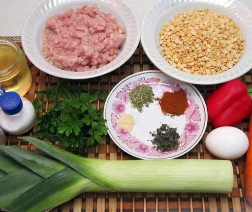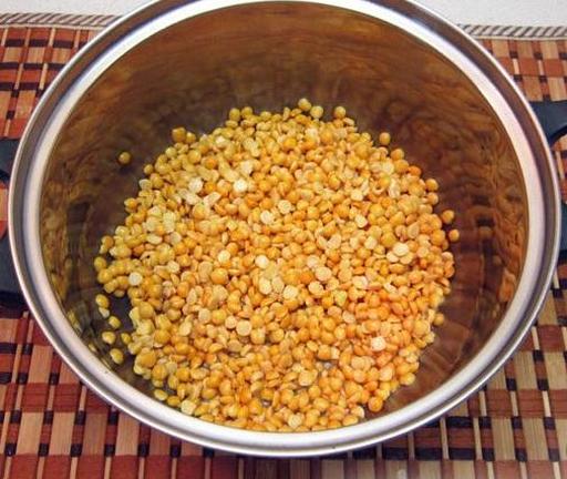 Prepare all the necessary ingredients. I used split peas, which cook relatively quickly and do not require pre-soaking.