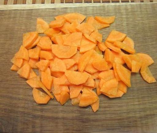 Peel the carrot and slice it into half-circles. If the carrot is large, cut it into quarter-circles.