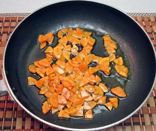 Heat vegetable oil in a frying pan and sauté the carrot for approximately 3-4 minutes, until lightly golden.