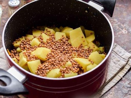 Pour in the buckwheat (rinse it beforehand if necessary).