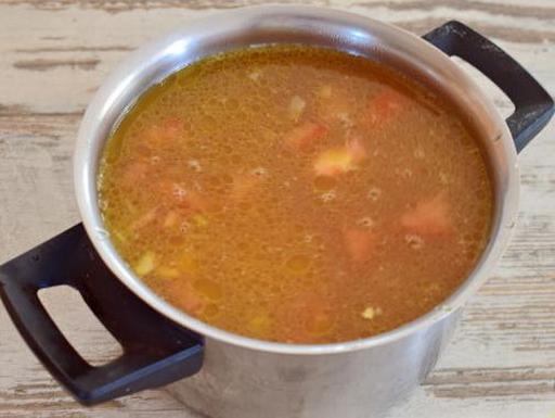 Add finely diced fresh tomatoes or canned tomatoes in their own juice to the soup.