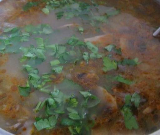 Then remove the Lenten rassolnik with mushrooms from the heat. Let the soup steep for 20 minutes. Wash and finely chop the herbs. Add to the soup.
