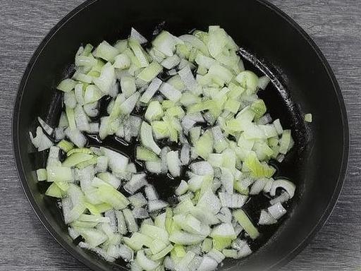 Peel and dice the onion. Heat vegetable oil in a frying pan and sauté the diced onion over medium heat for 2-3 minutes, stirring occasionally.