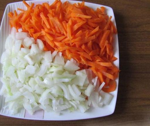 Sauté the vegetables in vegetable and butter. Add the mushrooms to boiling water (2-liter pot), cook for 20 minutes (for dried mushrooms, increase cooking time by 10 minutes). Then add the sautéed vegetables, cook for 10 minutes. Add bay leaf, minced garlic clove, table vinegar, salt, and pepper.