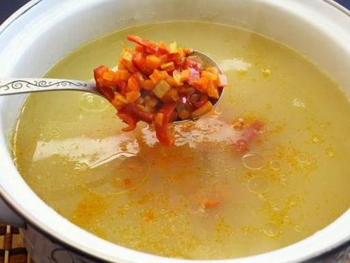 This pea soup recipe reveals a familiar dish from a new, original perspective. The abundance of spices and aromatic herbs gives the soup warm oriental notes, while fresh mint harmoniously complements the chicken pea soup with vegetables, creating an interesting and rich flavor. The soup turns out appetizing and hearty.