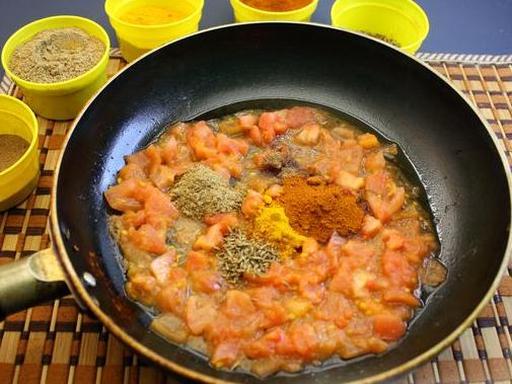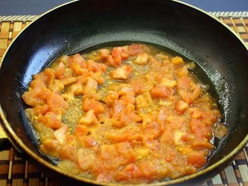 In a frying pan, heat 1 tablespoon of vegetable oil and sauté the tomatoes for 2-3 minutes until soft.