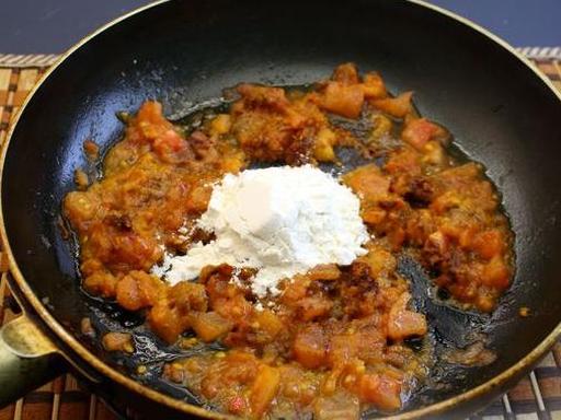 Sauté for another 1 minute and sprinkle flour into the pan.