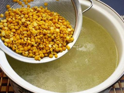 Prepare the necessary ingredients. If using whole peas, soak them in cold water for 6-8 hours (or overnight) beforehand. Split peas do not require soaking.