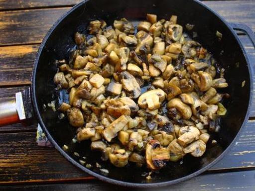 Обжаривайте грибы с луком примерно 10 минут до подрумянивания грибов.