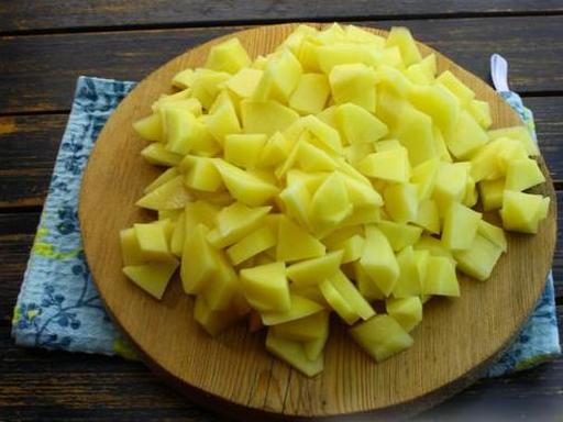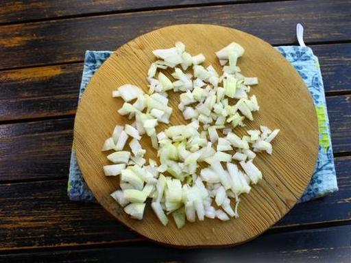Очистите репчатый лук и нарежьте его небольшими кубиками.
