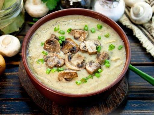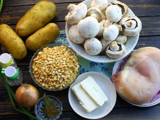 Сытный гороховый суп-пюре на курином бульоне с нежной консистенцией и грибным вкусом, благодаря обжаренным в сливочном масле шампиньонам. Идеально для питательного обеда.