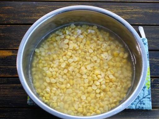 Замочите горох в холодной воде на 2 часа. Слейте воду, затем промойте горох.