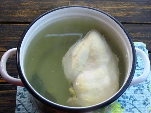 Доведите до кипения, снимите пену и варите бульон на медленном огне под крышкой 30-40 минут. Извлеките курицу для других блюд, а бульон процедите.