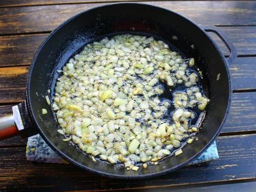В сковороде растопите 60 г сливочного масла и обжарьте лук 3-5 минут до мягкости и легкой золотистости.