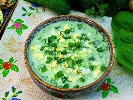 Эта окрошка, приготовленная на кефире с измельчённым шпинатом, приобретает уникальный, слегка изумрудный и освежающий оттенок. Несмотря на отсутствие мясных продуктов, она получается очень вкусной, лёгкой и при этом достаточно сытной. Это идеальное первое блюдо для жарких дней, дарящее ощущение прохлады!