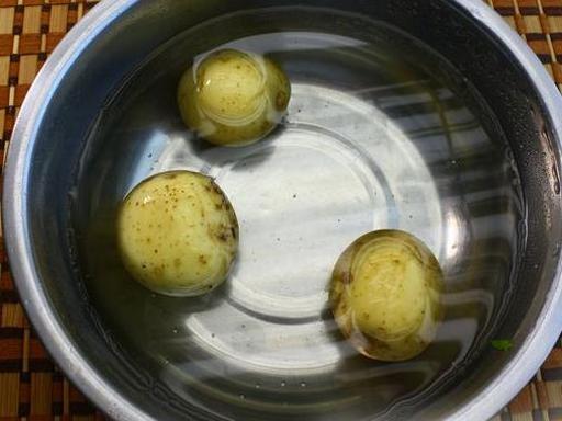 Яйца отварите вкрутую (8-10 минут после закипания). Затем остудите яйца в холодной воде.