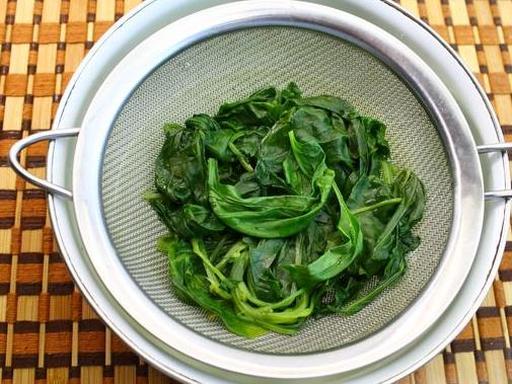 Откиньте шпинат на сито, чтобы стекла вся вода. Дайте шпинату немного остыть.