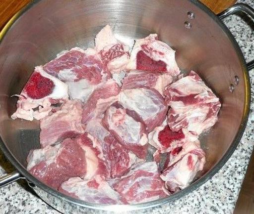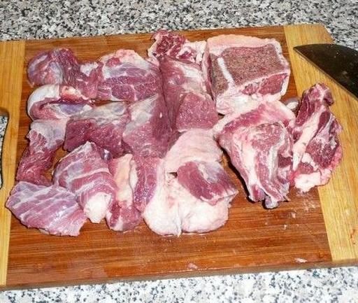 Замочіть горох нут на 3-4 години, краще на ніч. М'ясо наріжте середніми шматками, кісточки розрубайте для кращого виходу соку.