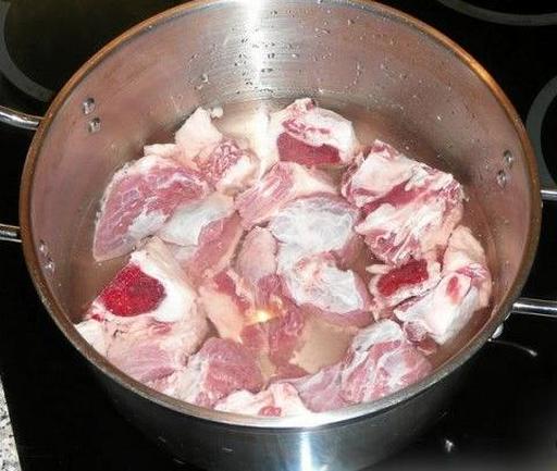 Залийте м'ясо холодною водою так, щоб воно було покрите (або трохи менше), і поставте на сильний вогонь.
