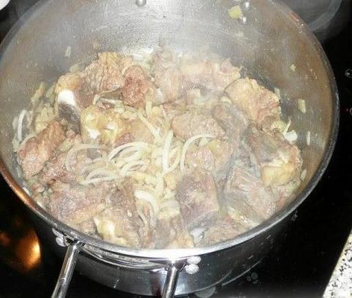 Злегка підсмажте м'ясо, постійно помішуючи.