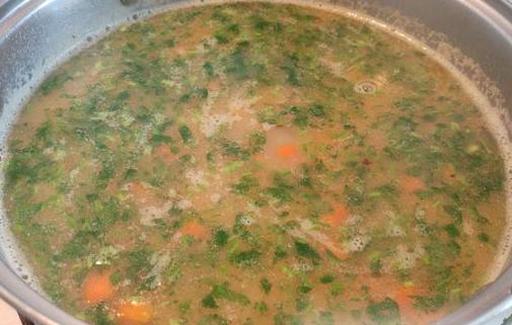 Додайте зелень. Варіть ще 5 хвилин. Зніміть з вогню. Дайте настоятися 15-20 хвилин.