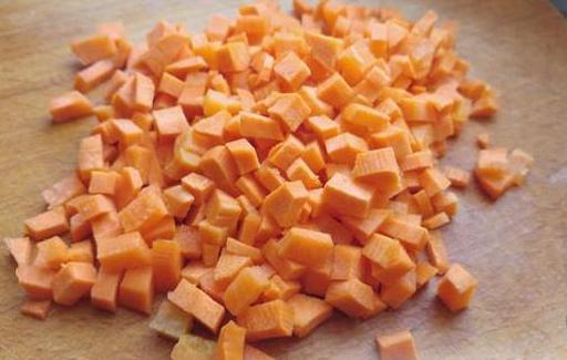 Очистіть та помийте моркву. Наріжте кубиками або брусочками.