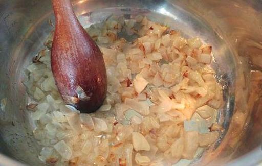 У каструлі з товстим дном розігрійте олію. Викладіть цибулю та обсмажте на середньому вогні, помішуючи, до прозорості (2-3 хвилини).