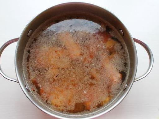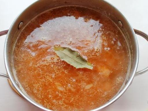 Додайте в каструлю лавровий лист, посоліть та поперчіть.