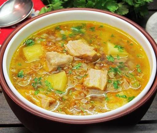Завдяки свинячому м'ясу на кісточці бульйон виходить дуже насиченим, а попередньо обсмажена гречка робить смак супу ще виразнішим. Ця ситна та ароматна перша страва ідеально підходить для повноцінного обіду!