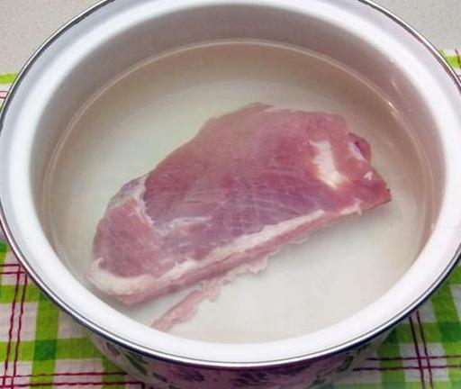 Промийте свинину, покладіть цілим шматком у каструлю та залийте водою. Доведіть до кипіння, зніміть піну, накрийте кришкою та варіть на слабкому вогні 1,5 години.