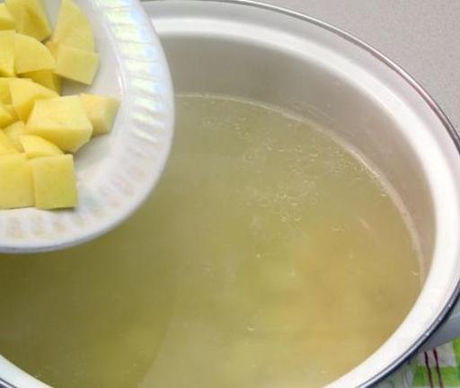 Додайте картоплю в бульйон.
