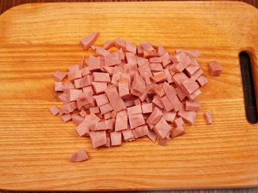 Наріжте шинку кубиками.