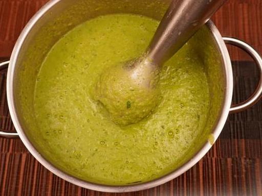 Пюруйте суп занурювальним блендером до однорідності.