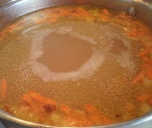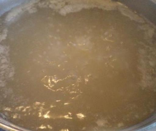 Вийміть готове м'ясо з бульйону. Додайте картоплю та рис у бульйон і варіть на середньому вогні 15 хвилин.