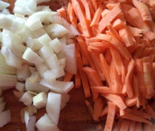 Очистіть, вимийте і наріжте цибулю та моркву.
