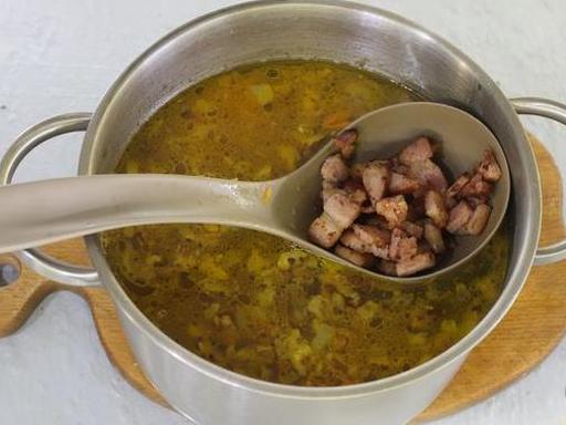Нутовий суп з копченою грудинкою та горіхами готовий.