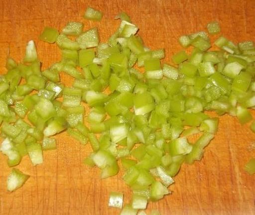Вимийте перець, очистіть від насіння та дрібно наріжте.