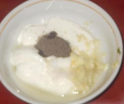 Роздавіть часник через часничницю, змішайте його з майонезом, лимонним соком, сіллю та перцем.