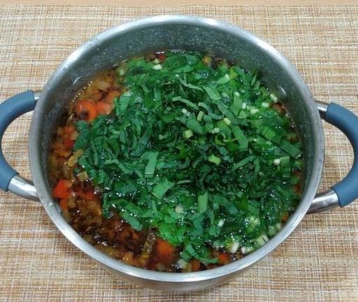 Перемішайте, доведіть суп до кипіння. Зменшіть вогонь до мінімуму і варіть ще 5 хвилин.