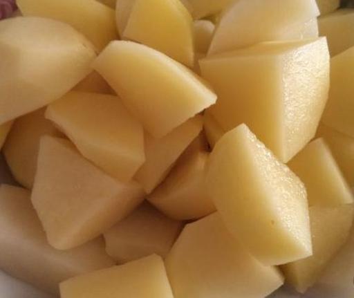 Очистіть картоплю та наріжте її шматочками.