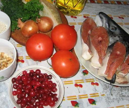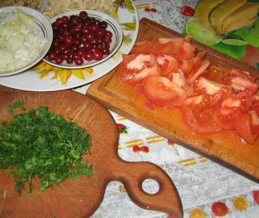Підготуйте овочі. Очистіть та натріть селеру, дрібно наріжте цибулю та зелень. Подрібніть горіхи. Помідори ошпарте, зніміть шкірку та наріжте шматочками.