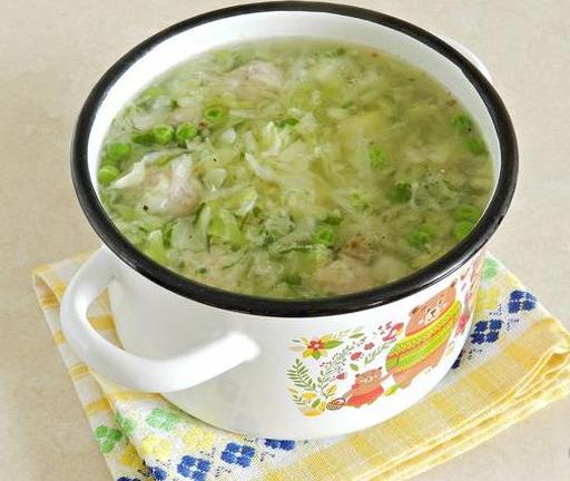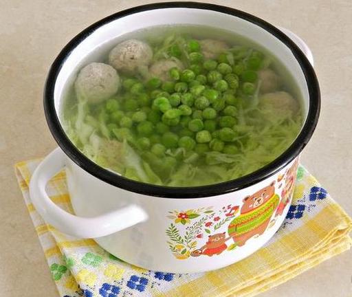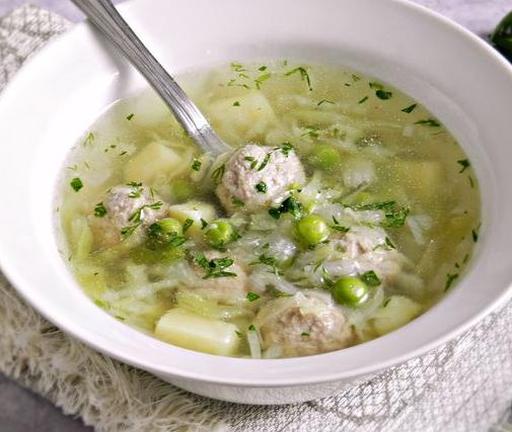 Цей дуже ароматний, ситний, але легкий суп з фрикадельками, капустою та зеленим горошком готується швидко з доступних інгредієнтів. Чудове рішення для обіду в будній день.