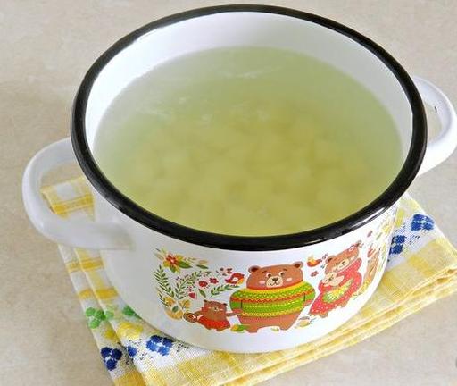 Всипте в суп заморожений горошок, не розморожуючи. Варіть 2 хвилини.