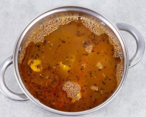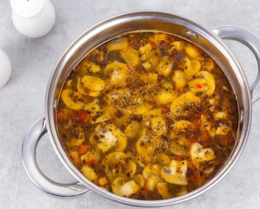 Вимкніть вогонь, додайте сіль та чорний мелений перець. За наявності часу накрийте каструлю кришкою та дайте супу настоятися 10 хвилин.