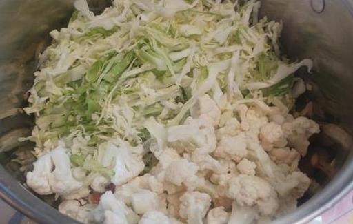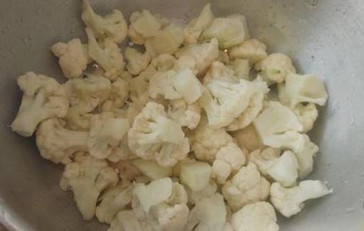 Цвітну капусту (або броколі) розділіть на суцвіття.