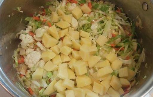 Тушкуйте овочі на невеликому вогні під кришкою 10 хвилин.
