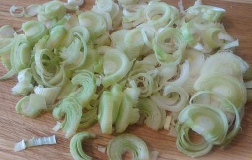 У каструлі з товстим дном розтопіть вершкове масло. Потім додайте рослинну олію. У гарячу олію викладіть цибулю та моркву. Обсмажуйте овочі, помішуючи, на середньому вогні 3-4 хвилини. Потім додайте цибулю-порей. Обсмажте ще 2-3 хвилини.