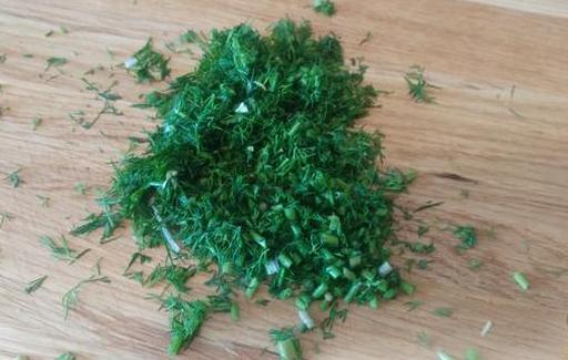 Свіжий кріп дрібно наріжте. Кілька гілочок залиште для подачі.